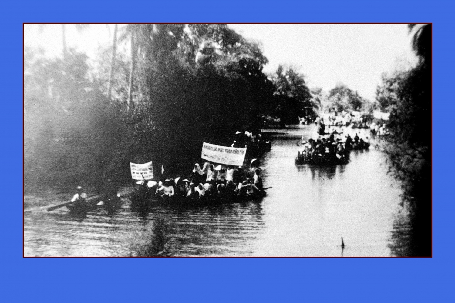 Bè thủy lục từ các nơi nô nức kéo về điểm lễ tại Bà Đầm (xã Trường Xuân, huyện Ô Môn, Cần Thơ) mừng kỷ niệm Ngày Độc lập (2/9/1945 - /9/1949). Nguồn: Bảo tàng thành phố Cần Thơ