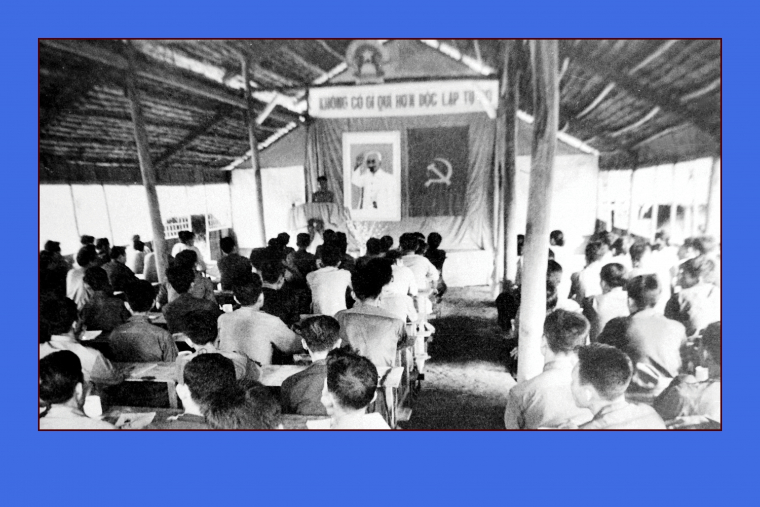 Chủ tịch Hồ Chí Minh đọc Tuyên ngôn độc lập tuyên bố thành lập nước Việt Nam Dân chủ Cộng hòa tại quảng trường Ba Đình, Hà Nội, ngày 02/9/1945. Nguồn: Bảo tàng thành phố Cần Thơ.