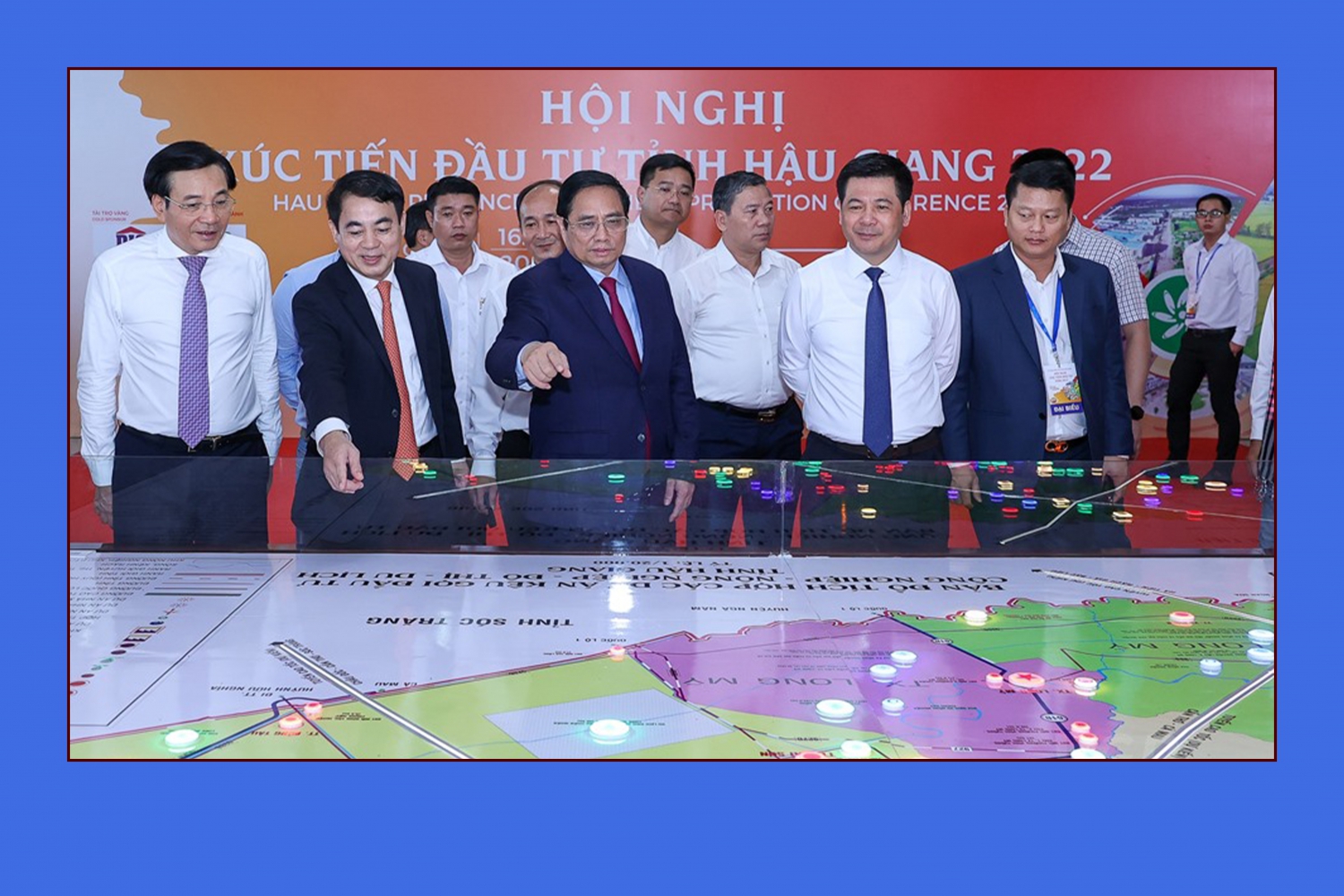 Thủ tướng Phạm Minh Chính tham quan bản đồ địa giới hành chính tỉnh Hậu Giang, năm 2022. Nguồn: Bảo tàng Hậu Giang