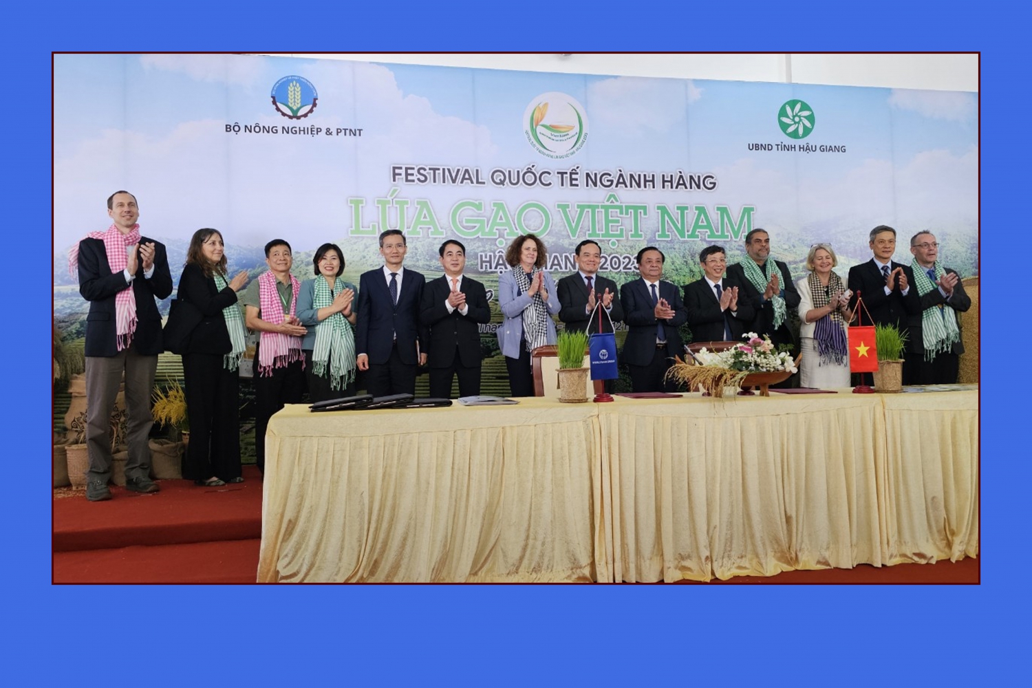 Quang cảnh lễ ký kết hợp tác giữa Bộ Nông nghiệp và Phát triển nông thôn Việt Nam và Ngân hàng Thế giới, tại Festival ngành hàng lúa gạo Việt Nam tổ chức tại Hậu Giang, năm 2023. Nguồn: Bảo tàng Hậu Giang