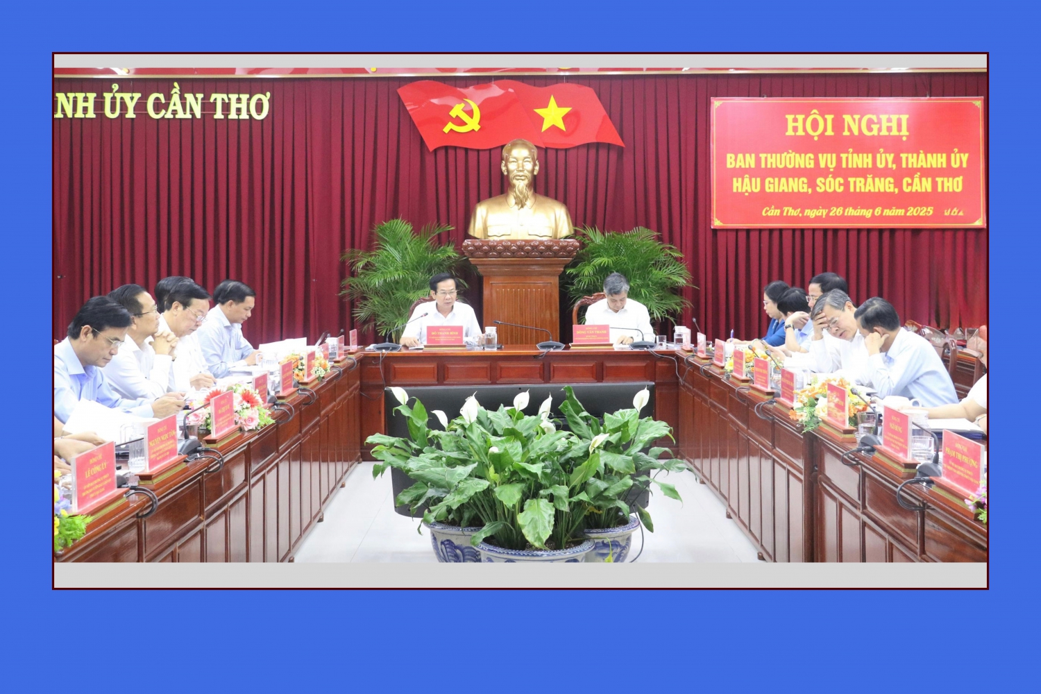 Các đại biểu dự hội nghị Ban Thường vụ Tỉnh ủy, Thành ủy: Hậu Giang, Sóc Trăng và Cần Thơ, ngày 26/6/2025. Ảnh: Quốc Thái