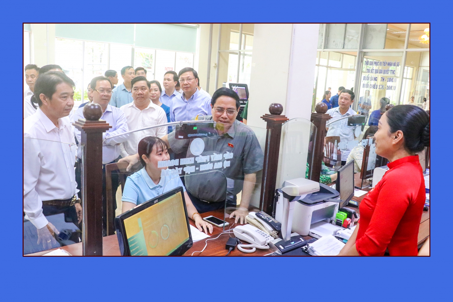 Thủ tướng Phạm Minh Chính tham quan và trao đổi với công chức tại Trung tâm Phục vụ hành chính công phường Ninh Kiều, TP Cần Thơ, ngày 13/7/2025. Ảnh: Quốc Thái